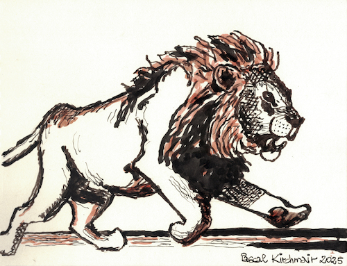 #466210 / aantal keren"Running Lion", burnt sienna and black ink on paper, 18 x 24 cm